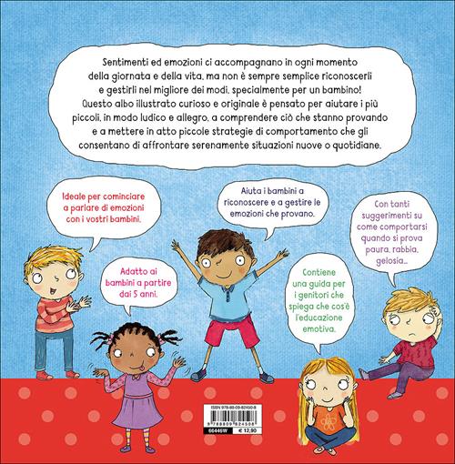 Se sei triste, cosa puoi fare per sentirti meglio? Accendi la musica e mettiti a ballare! Se è il primo giorno di scuola e sei impaurito, siediti vicino a qualcuno che ti sorride! Sentimenti ed emozioni ci accompagnano in ogni momento della giornata e della vita, ma non è semplice riconoscerli e gestirli nel migliore dei modi, specialmente per un bambino! Questo albo illustrato curioso e originale è pensato per aiutare i più piccoli, in modo ludico e allegro, a comprendere ciò che stanno provando e a mettere in atto strategie di comportamento che gli consentano di affrontare serenamente situazioni nuove o quotidiane. Età di lettura: da 5 anni.
