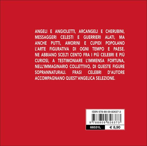 Angeli e angioletti, arcangeli e cherubini, messaggeri celesti e guerrieri alati, ma anche putti, amorini e cupidi popolano l'arte figurativa di ogni tempo e paese. Ne abbiamo scelti cento fra i più celebri e più curiosi, a testimoniare l'mmensa fortuna, nell'immaginario collettivo, di queste figure soprannaturali. Frasi celebri d'autore accompagnano quest'angelica selezione.