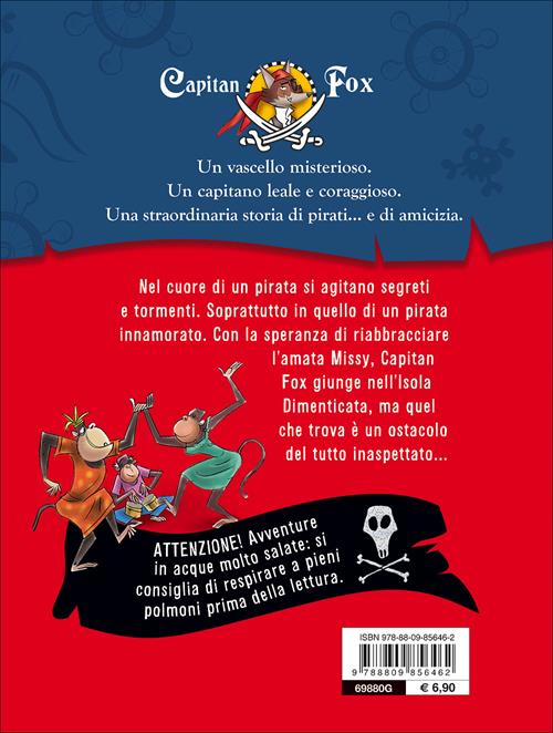 Un vascello misterioso. Un capitano leale e coraggioso. Una straordinaria storia di pirati... e di amicizia. Nel cuore di un pirata si agitano segreti e tormenti. Soprattutto in quello di un pirata innamorato. Con la speranza di riabbracciare l'amata Missy, Capitan Fox giunge nell'Isola Dimenticata, ma quel che trova è un ostacolo del tutto inaspettato... Età di lettura: da 7 anni.