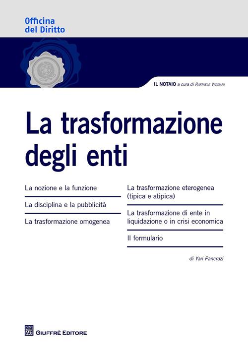 L'opera affronta le seguenti tematiche: la nozione e la funzione; la disciplina e la pubblicità; la trasformazione omogenea; la trasformazione eterogenea (tipica e atipica); la trasformazione di ente in liquidazione o in crisi economica; il formulario.