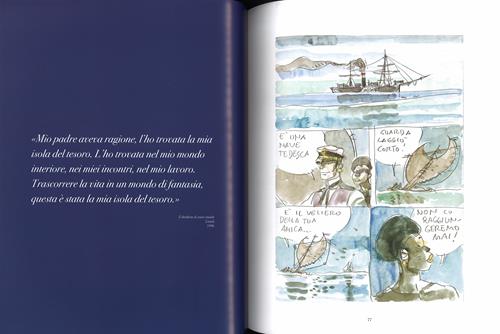 "Racconto la verità come se fosse una cosa falsa" confessava Hugo Pratt in un'intervista del 1995. "A differenza di molti altri che raccontano cose false volendole far passare per vere, in questo modo la lettura diventa doppia, tripla e il lettore trova che certe cose che ho detto erano vere, allora gli viene una gran voglia di andare alla loro ricerca." E in un continuo gioco di specchi tra Realtà e Finzione che si materializza tutta la poetica di questo maestro della narrazione, sempre in bilico tra Alto e Basso, tra Passato e Modernità. Così come, sempre in una giostra di riflessi, Pratt si è via via identificato con il suo antieroe Corto Maltese, imprimendo nel personaggio i segni della sua storia personale e delle sue più profonde inquietudini. Curata da Patrizia Zanotti, la mostra Hugo Pratt e Corto Maltese. 50 anni di viaggi nel mito celebra il cinquantenario della nascita del celebre marinaio, apparso per la prima volta nel 1967 nell'indimenticabile "Una ballata del mare salato". In questa vorticosa galleria di immagini, molte delle quali mai viste prima d'ora, c'è spazio anche per intense e preziose testimonianze di grandi conoscitori dell'opera prattiana come Antonio Calabro, Antonio Faeti, Enrico Fornaroli, Fabio Roversi-Monaco e Marco Steiner. Tra le pagine di questo libro si srotola silenziosa e seducente la pellicola di un film fatto di tavole in bianco e nero, appunti a matita e ricordi acquerellati.