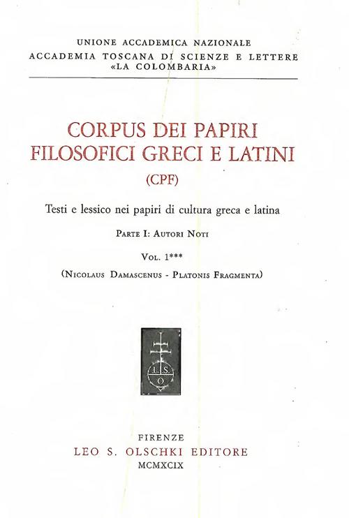Corpus dei papiri filosofici greci e latini. Testi e lessico nei papiri di cultura greca e latina. Vol. 1: Autori noti