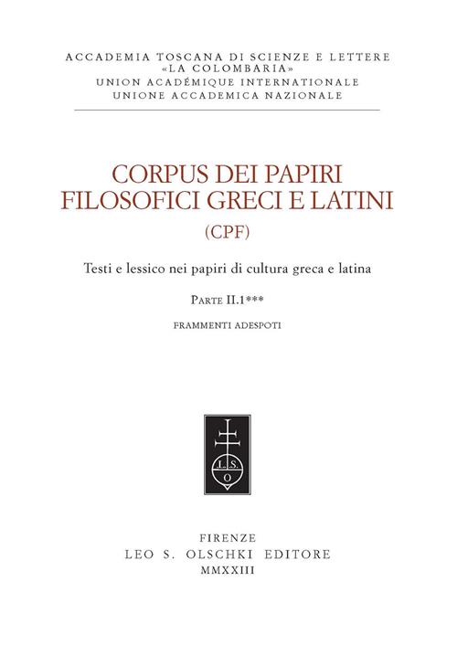 Corpus dei papiri filosofici greci e latini. Testi e lessico nei papiri di cultura greca e latina. Vol. 1/2: Frammenti Adespoti. Frammenti Adespoti e sentenze