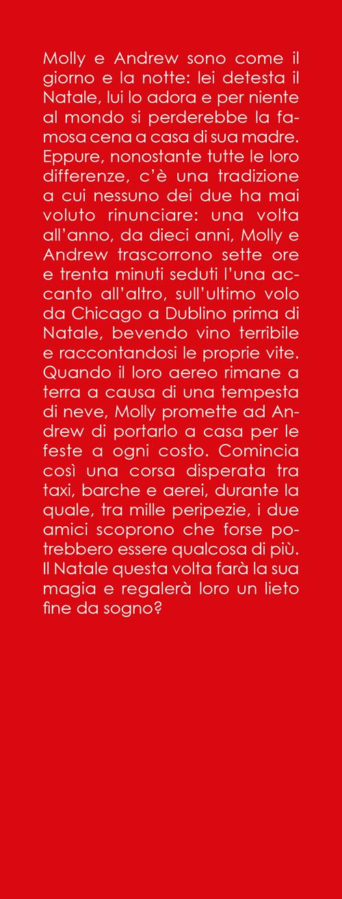 Molly e Andrew sono come il giorno e la notte: lei detesta il Natale, lui lo adora e per niente al mondo si perderebbe la famosa cena a casa di sua madre. Eppure, nonostante tutte le loro differenze, c'è una tradizione a cui nessuno dei due ha mai voluto rinunciare: una volta all'anno, da dieci anni, Molly e Andrew trascorrono sette ore e trenta minuti seduti l'una accanto all'altro, sull'ultimo volo da Chicago a Dublino prima di Natale, bevendo vino terribile e raccontandosi le proprie vite. Quando il loro aereo rimane a terra a causa di una tempesta di neve, Molly promette ad Andrew di portarlo a casa per le feste a ogni costo. Comincia così una corsa disperata tra taxi, barche e aerei, durante la quale, tra mille peripezie, i due amici scoprono che forse potrebbero essere qualcosa di più. Il Natale questa volta farà la sua magia e regalerà loro un lieto fine da sogno? Molly e Andrew stanno cercando di tornare in Irlanda per Natale. Ma una tormenta di neve cancella il volo e scombina tutti i loro piani, soprattutto quelli del cuore...