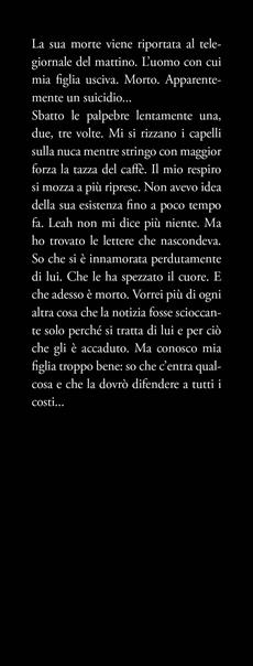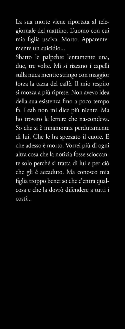 Lei è come me… E questo è molto pericoloso La sua morte viene riportata al telegiornale del mattino. L'uomo con cui mia figlia usciva. Morto. Apparentemente un suicidio... Sbatto le palpebre lentamente una, due, tre volte. Mi si rizzano i capelli sulla nuca mentre stringo con maggior forza la tazza del caffè. Il mio respiro si mozza a più riprese. Non avevo idea della sua esistenza fino a poco tempo fa. Leah non mi dice più niente. Ma ho trovato le lettere che nascondeva. So che si è innamorata perdutamente di lui. Che le ha spezzato il cuore. E che adesso è morto. Vorrei più di ogni altra cosa che la notizia fosse scioccante solo perché si tratta di lui e per ciò che gli è accaduto. Ma conosco mia figlia troppo bene: so che c'entra qualcosa e che la dovrò difendere a tutti i costi... Il mio primo errore è stato crescere mia figlia in modo che fosse simile a me. Il mio secondo errore potrebbe essere quello che faccio per proteggerla...