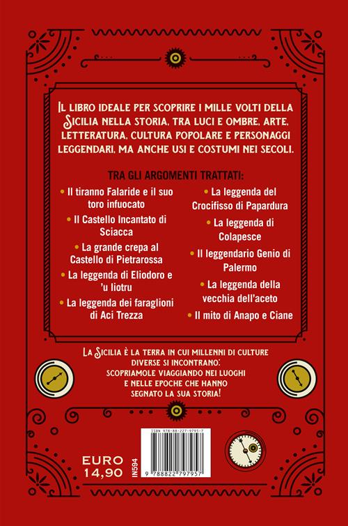 Il libro ideale per scoprire i mille volti della Sicilia nella storia, tra luci e ombre, arte, letteratura, cultura popolare e personaggi leggendari, ma anche usi e costumi nei secoli. Tra gli argomenti trattati: Il tiranno Falaride e il suo toro infuocato; Il Castello Incantato di Sciacca; La grande crepa al Castello di Pietrarossa; La leggenda di Eliodoro e 'u liotru; La leggenda dei faraglioni di Aci Trezza; La leggenda del Crocifisso di Papardura; La leggenda di Colapesce; Il leggendario Genio di Palermo; La leggenda della vecchia dell'aceto; Il mito di Anapo e Ciane La Sicilia è la terra in cui millenni di culture diverse si incontrano: scopriamole viaggiando nei luoghi e nelle epoche che hanno segnato la sua storia! Nessuna regione al mondo ha conosciuto una storia più ricca della Sicilia. Fenici, greci, arabi, normanni, spagnoli: un crogiolo di culture ha segnato l'identità dell'isola, il suo profilo e le sue arti. Ogni capitolo di questo libro è un viaggio nel tempo che ripercorre le tappe fondamentali della lunghissima storia siciliana, a partire dai fastosi monumenti della Magna Grecia per poi leggere i segni delle battaglie normanne, seguire le tracce della raffinatissima arte islamica, scoprire le città barocche del Val di Noto, osservare l'iconografia e la letteratura sui Vespri Siciliani e rivisitare i luoghi del Quarantotto palermitano, dello sbarco dei Mille e della ribellione popolare dei Fasci Siciliani. Ogni angolo di Sicilia racconta di personaggi e storie incredibili, a volte illustri a volte cupe, e mai banali. Ma non mancano nemmeno gli incontri con i grandi della storia che si sono innamorati della bellezza impareggiabile della Sicilia, il “paese dove fioriscono i limoni”.