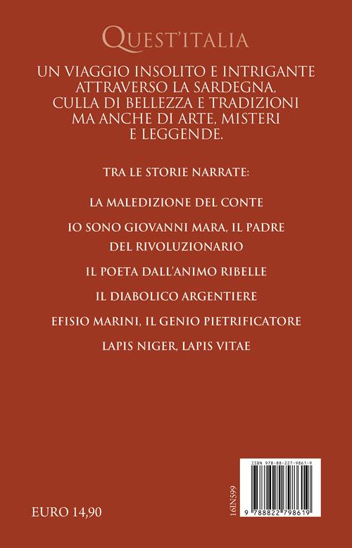 Un viaggio insolito e intrigante attraverso la Sardegna, culla di bellezza e tradizioni ma anche di arte, misteri e leggende. Geni ribelli, misteri, bellezze e magie di un'isola dai mille volti Pierluigi Serra, autore che ha appassionato migliaia di lettori rivelando il lato più arcano della sua Sardegna, racconta in questo libro gli straordinari luoghi e personaggi che hanno segnato l'arte, la storia, la cultura e le leggende dell'isola. Opere perturbanti, misteri e richiami esoterici attraversano i secoli dall'antichità ai giorni nostri, raccontando le storie leggendarie di artisti accomunati da un carattere forte, dalla passione per la bellezza e da una vita sul filo del rasoio. Da un giovane Gabriele D'Annunzio, viaggiatore in Sardegna a caccia di sedute spiritiche, ad artisti e scultori come Karmine Piras e Giuseppe Sartorio, che hanno riscoperto e reinterpretato le tradizioni locali, fino a figure come quella di Efisio Marini, studioso cagliaritano capace di pietrificare i corpi: un libro che renderà ancora più affascinante un'isola meravigliosa e ricca di mistero. Tra le storie narrate: La maledizione del conte; Io sono Giovanni Mara, il padre del rivoluzionario; Il poeta dall'animo ribelle; Il diabolico argentiere Efisio Marini, il genio pietrificatore Lapis niger, lapis vitae.