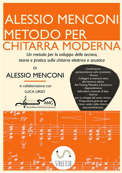 Il “Metodo per chitarra moderna", in collaborazione con Luca Urso, è un corso propedeutico per fornire basi e nozioni fondamentali all’allievo e permettergli di affrontare i primi brani, con relativi assoli ed accompagnamenti. Tra gli argomenti trattai: sviluppo della coordinazione tra pensiero e azione sullo strumento, esercizi per lo sviluppo della tecnica manuale sullo strumento, collegare la memoria visiva alla memoria uditiva, sviluppo dell’orecchio sia in senso melodico che armonico, apprendimento della lettura musicale di base, esercizi per lo sviluppo del senso ritmico, preparazione generale per affrontare i brani celebri della chitarra pop, rock, blues e jazz...