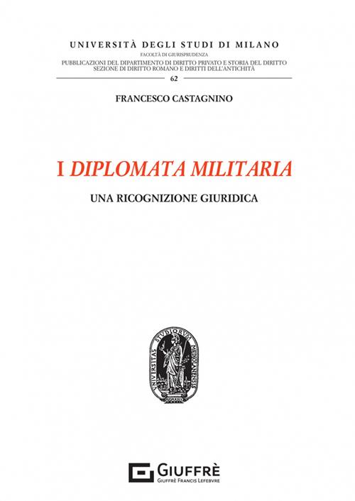 Il presente volume si propone di approfondire alcuni aspetti riguardanti i cosiddetti diplomata militaria. Con tale espressione si designano quei documenti bronzei attestanti i privilegi conferiti dall'imperatore ai soldati di taluni reparti dell'esercito romano (auxilia, classes, equites singulares Augusti, cohortes praetoriae, etc.): nello specifico, i diplomi costituivano degli estratti individuali conformi alle decisioni imperiali concedenti i beneficia dei militari. Oggetto di questa ricerca sono, in particolare, i profili giuridici di tali documenti. Nella prima parte del lavoro si esaminano, in primo luogo, le caratteristiche generali dei diplomata, nonché i presupposti e le procedure alla base del loro rilascio. Una volta definiti questi aspetti, lo studio prosegue con un'analisi, sul piano strettamente giuridico, dei formulari dei diplomi, al fine di individuare i privilegia concessi ai soldati dei differenti corpi. La seconda parte della monografia si concentra, invece, su alcune questioni di ius publicum che emergono dallo studio di questi documenti, tra cui il controverso problema della forma giuridica delle costituzioni imperiali poste a fondamento del loro rilascio.