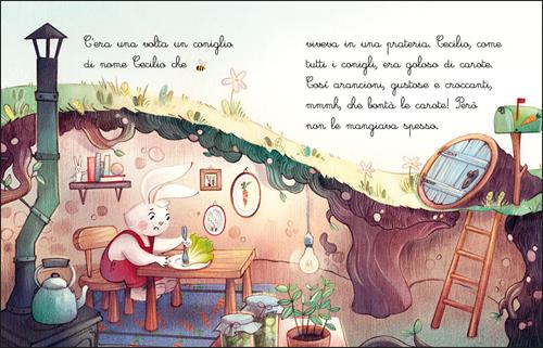 Un libro illustrato per bambini dai 5 anni. Una storia in 10 minuti per chi legge il corsivo e un testo medio e semplice, perfetto per le prime letture. «C'era una volta un coniglio di nome Cecilio che viveva in una prateria. Cecilio, come tutti i conigli, era goloso di carote...» Età di lettura: da 5 anni.