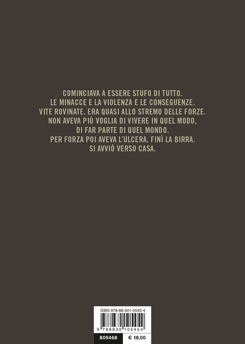 Cominciava a essere stufo di tutto. Le minacce e la violenza e le conseguenze. Vite rovinate. Era quasi allo stremo delle forze. Non aveva più voglia di vivere in quel mondo, di far parte di quel mondo. Per forza poi aveva l'ulcera. Finì la birra. Si avviò verso casa.
