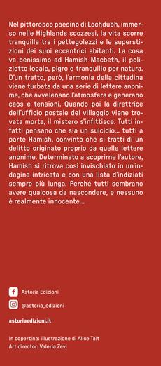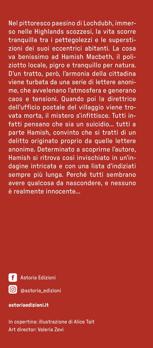 Nel pittoresco paesino di Lochdubh, immerso nelle Highlands scozzesi, la vita scorre tranquilla tra i pettegolezzi e le superstizioni dei suoi eccentrici abitanti. La cosa va benissimo ad Hamish Macbeth, il poliziotto locale, pigro e tranquillo per natura. D'un tratto, però, l'armonia della cittadina viene turbata da una serie di lettere anonime, che avvelenano l'atmosfera e generano caos e tensioni. Quando poi la direttrice dell'ufficio postale del villaggio viene trovata morta, il mistero s'infittisce. Tutti infatti pensano che sia un suicidio... tutti a parte Hamish, convinto che si tratti di un delitto originato proprio da quelle lettere anonime. Determinato a scoprirne l'autore, Hamish si ritrova così invischiato in un'indagine intricata e con una lista d'indiziati sempre più lunga. Perché tutti sembrano avere qualcosa da nascondere, e nessuno è realmente innocente...