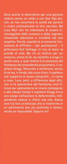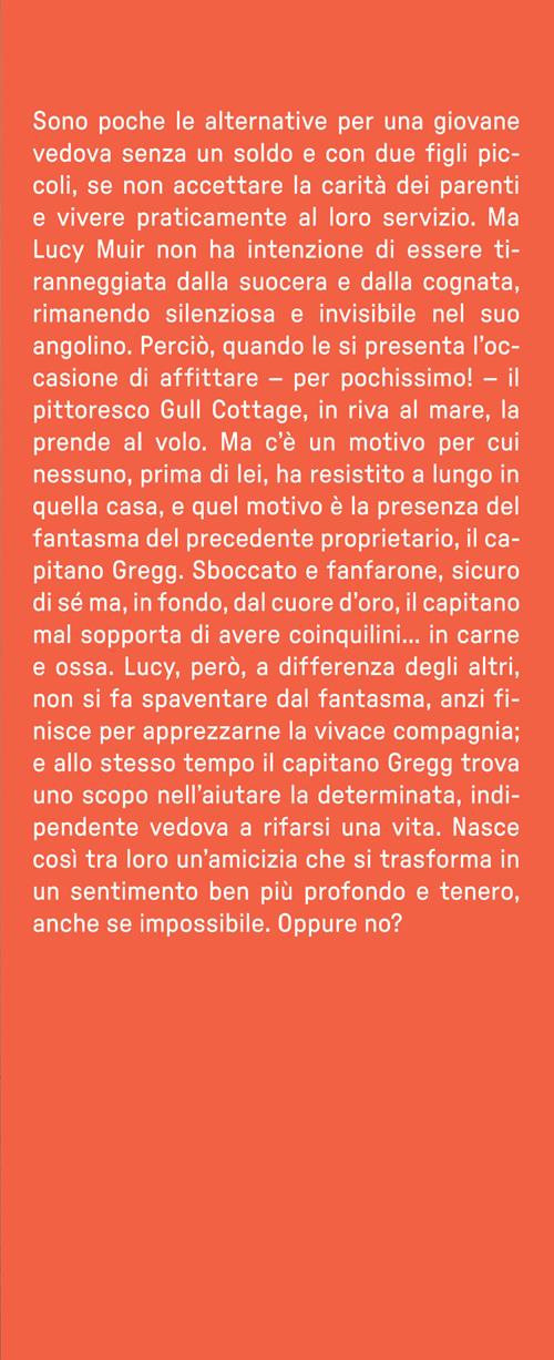 Sono poche le alternative per una giovane vedova senza un soldo e con due figli piccoli, se non accettare la carità dei parenti e vivere praticamente al loro servizio. Ma Lucy Muir non ha intenzione di essere tiranneggiata dalla suocera e dalla cognata, rimanendo silenziosa e invisibile nel suo angolino. Perciò, quando le si presenta l'occasione di affittare – per pochissimo! – il pittoresco Gull Cottage, in riva al mare, la prende al volo. Ma c'è un motivo per cui nessuno, prima di lei, ha resistito a lungo in quella casa, e quel motivo è la presenza del fantasma del precedente proprietario, il capitano Gregg. Sboccato e fanfarone, sicuro di sé ma, in fondo, dal cuore d'oro, il capitano mal sopporta di avere coinquilini… in carne e ossa. Lucy, però, a differenza degli altri, non si fa spaventare dal fantasma, anzi finisce per apprezzarne la vivace compagnia; e allo stesso tempo il capitano Gregg trova uno scopo nell'aiutare la determinata, indipendente vedova a rifarsi una vita. Nasce così tra loro un'amicizia che si trasforma in un sentimento ben più profondo e tenero, anche se impossibile. Oppure no?