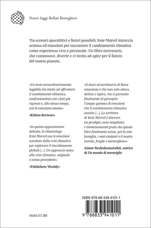 I dati scientifici non lasciano dubbi: il pianeta si sta riscaldando e la crisi climatica è la più grande sfida che l'umanità si trovi ad affrontare. Eppure la crudezza delle cifre non basta a scuoterci: nel discorso sul clima manca spesso un elemento decisivo, quello delle emozioni. Kate Marvel compie un passo inedito e necessario: racconta la scienza del cambiamento climatico a partire da nove emozioni diverse. Rabbia, paura e dolore, certo, ma anche speranza, meraviglia e amore. Perché senza emozioni non c'è comprensione autentica, né possibilità di cambiamento. Attraverso scenari possibili e mondi digitali creati nelle sue simulazioni al computer, Marvel esplora futuri alternativi della Terra, illustrando come ogni decisione umana influisca sul clima e sulle vite che popolano il pianeta. Con una scrittura limpida e vibrante, Marvel intreccia fisica e mitologia, vulcani e imperatori romani, boschi di sequoie e film scadenti, accompagnandoci in un viaggio sorprendente dentro le storie, le immagini e i piccoli miracoli della natura che troppo spesso diamo per scontati.