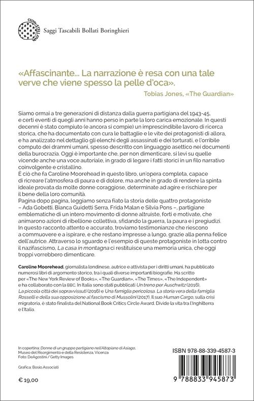 Siamo ormai a tre generazioni di distanza dalla guerra partigiana del 1943-45, e certi eventi di quegli anni hanno perso in parte la loro carica emozionale. In questi decenni è stato compiuto (e ancora si compie) un imprescindibile lavoro di ricerca storica, che ha documentato con cura le battaglie e le vite dei protagonisti di allora, e ha analizzato nel dettaglio gli elenchi degli assassinati e dei torturati, e l'orribile computo dei drammi umani, spesso descritto con linguaggio asettico nei documenti della burocrazia. Oggi è importante che, per non dimenticare, si levi su quelle vicende anche una voce autoriale, in grado di legare i fatti storici in un filo narrativo coinvolgente e cristallino. È ciò che fa Caroline Moorehead in questo libro, un'opera completa, capace di ricreare l'atmosfera di paura e di dolore, ma anche in grado di rendere la spinta ideale provata da molte donne coraggiose, determinate ad agire e rischiare per il bene della loro comunità. Pagina dopo pagina, leggiamo senza fiato la storia delle quattro protagoniste – Ada Gobetti, Bianca Guidetti Serra, Frida Malan e Silvia Pons –, partigiane emblematiche di un intero movimento di donne altruiste, forti e motivate, che animarono azioni di ribellione collettiva, sfidando la guerra, la paura e i pregiudizi. In questo racconto, attento e delicato, troviamo testimonianze che riescono a commuovere e a ispirare, e restano impresse a lungo, grazie alla penna felice dell'autrice. Attraverso lo sguardo e l'esempio di queste protagoniste in lotta contro il nazifascismo, "La casa in montagna" ci restituisce una memoria unica, che oggi troppi vorrebbero dimenticare.