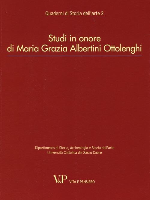 "Il secondo numero dei "Quaderni di Storia dell'arte" rende omaggio a Maria Grazia Alberti Ottolenghi. Giunta in Università Cattolica come docente di Storia delle tecniche artistiche per la Scuola di Specializzazione in Storia dell'arte, Maria Grazia Albertini Ottolenghi ha poi tenuto le Cattedre di Storia dell'arte moderna e Storia dell'arte lombarda presso la Facoltà di Lettere e Filosofia, in anni di radicali e complesse trasformazioni, alle quali ha partecipato con illuminato e attento ruolo di coordinamento didattico e scientifico. I suoi studi dedicati all'arte lombarda - con particolare attenzione a Pavia - dal Medioevo al Settecento e, più in generale, agli aspetti tecnici e materiali della produzione pittorica e scultorea si sono imposti a livello nazionale e internazionale contribuendo a dilatare e approfondire la concezione di manufatto artistico su versanti oggi non più trascurabili. Un magistero innovativo, diffuso con passione e acribia, capace di sondare le molteplici possibilità di conoscenza delle opere d'arte, percorse con meticolosità e pazienza."