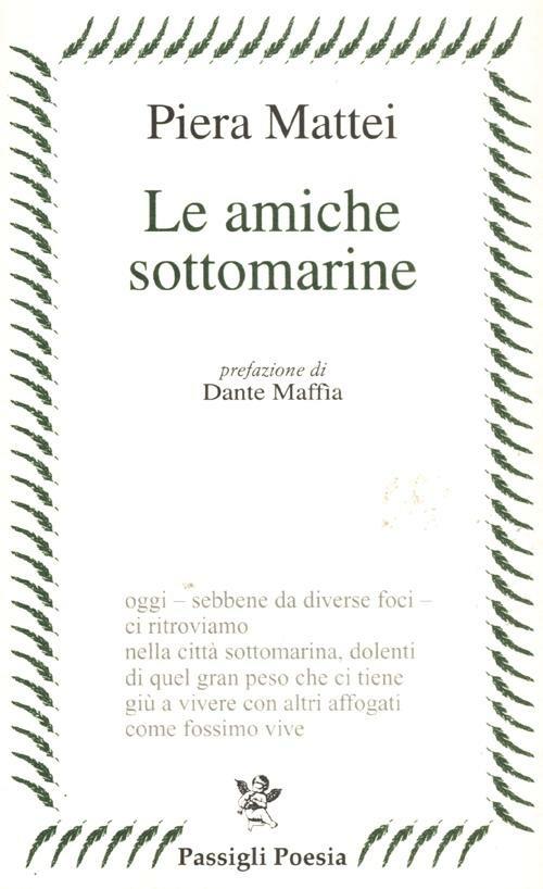"...La poesia vera, autentica, densa di umori, accesa da verità e da suggestioni che si fanno senso del divenire non nasce, non può nascere come un fungo o come una distillazione di sole letture, ma nasce da una serie di componenti che macerano nell'anima e fanno poi fiorire la parola che potrà dire qualcosa di importante e di nuovo. Ecco, la poesia di Piera Mattei è il frutto di questa confluenza di incontri e di scontri, di lacerazioni e di intuizioni, di esperienze e di analisi che si fondono con ragioni universali per diventare postille di una condizione umana esemplare. Non vedo in giro molti esempi, oggi, di poesia che sappia partire dal proprio io per farsi portavoce di interessi globali senza perdere una briciola della propria identità. E la scommessa sta, credo, proprio in questo equilibrio espressivo e di tematiche che oscillano verticalmente e orizzontalmente dal mondo degli affetti a quello delle amicizie, dei libri, dei viaggi, del sociale, del pensiero. 'Le amiche sottomarine' è un libro in qualche modo stimma del percorso di Piera, che si confessa in un modo tutto speciale, che diventa affluente e fiume di una se stessa frantumata, dilatata, ricostruita e perfettamente deserto e folla insieme..." (Prefazione di Dante Maffìa)