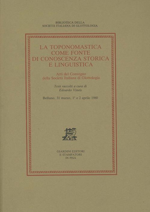 La toponomastica come fonte di conoscenza storica e linguistica. Atti del Convegno (Belluno, 31 marzo-2 aprile 1980)