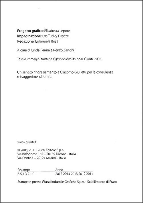 La struttura delle corde e le operazioni di base - come tagliare la corda, riporre un cavo e così via - sono dettagliatamente spiegate in una parte introduttiva, cui seguono sezioni sulle varie tipologie di nodi: nodi d'arresto, nodi di accorciamento, nodi di giunzione, gasse, nodi di avvolgimento, nodi "in viaggio" per affrontare varie situazioni di vita all'aperto, nodi da pesca, ma anche nodi ornamentali, nodi magici, idee regalo, rompicapo... con tanti modelli illustrati con disegni chiari e indicazioni su quando e come impiegarli.