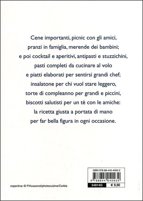 Un volume per chi desidera avere a portata di mano un ricettario davvero completo. Ricco di preparazioni per tutti i gusti e per tutte le occasioni, per variare finalmente il menu di ogni giorno, per chi ama dedicarsi ai fornelli ma anche per chi ha poco tempo. Per affrontare piatti semplici e tradizionali e per chi desidera sperimentare ricette più elaborate, saporite pietanze, originali e di grande effetto, ideali per sorprendere gli ospiti. Il ricettario, ricco di ricette e illustrazioni, è strutturato in molti capitoletti, secondo una suddivisione che permette al lettore di consultare le preparazioni in modo chiaro e veloce. Indicazioni sui tempi di preparazione e sul grado di difficoltà vi aiuteranno a scegliere le vostre ricette ideali.