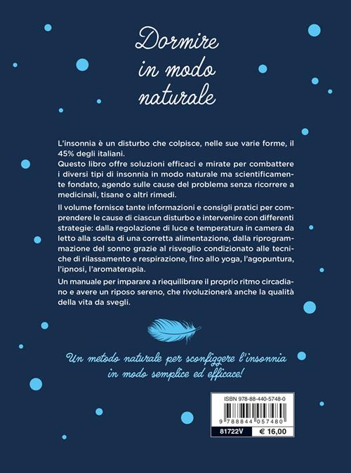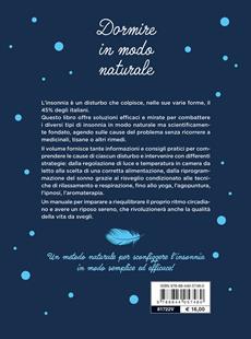 L'insonnia è un disturbo sempre più diffuso, di fronte al quale, dopo vari consulti e consigli più o meno utili, spesso ci si rassegna a provare tisane e altri rimedi, fino a ricorrere ai medicinali. Oggi la scienza del sonno ha fatto enormi passi avanti, arrivando a comprendere meglio l'origine dell'insonnia e a valutare nuove opzioni terapeutiche: la vera chiave per riuscire a dormire bene è quella di individuare le cause del problema. Questo libro spiega in modo chiaro come riconoscere di quale tipo di insonnia si soffre e individuare la soluzione più adeguata ed efficace. Il volume offre tante informazioni e consigli pratici per comprendere le cause di ciascun problema e intervenire con diverse strategie, tutte naturali: dalla regolazione di luce e temperatura in camera da letto alla scelta di una corretta alimentazione, dalla riprogrammazione del sonno grazie al risveglio condizionato alle tecniche di rilassamento e respirazione, yoga, agopuntura, ipnosi, aromaterapia ecc. Un manuale per imparare a riequilibrare il proprio ritmo circadiano e avere un riposo sereno, che rivoluzionerà anche la qualità della vita da svegli.