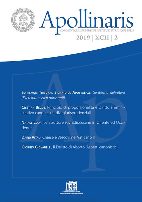 Apollinaris è dal 1928 lo strumento attraverso cui l'Institutum Utriusque Iuris della Pontificia Università Lateranense esprime e condivide la propria riflessione sul fenomeno giuridico, tanto nella sua espressione canonica che civile, con attenzione privilegiata alla comparazione ed alle dinamiche inter ordinamentali, sia storiche che contemporanee. L'unità del fenomeno giuridico costituisce per la Chiesa una preziosa occasione d'incontro e scambio con la cultura umana di ogni tempo e luogo (come già avvenne per lo Ius commune) in una reciprocità di apporti, anche tecnici, consapevole di dover sempre porre la persona al centro della vita sociale ed istituzionale. L'attenzione sia ai fondamenti, sia alla prassi, del vivere giuridico mantiene aperto il dialogo con tutti coloro che nella pratica del Diritto vedono un'irrinunciabile conquista ed una via concreta per il futuro dell'umanità.