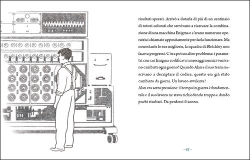 Un libro illustrato per bambini dai 7 anni, per scoprire la vita di Alan Turing, uno dei più grandi matematici e scienziati della Storia. Un racconto che parla di scienza, informatica, guerra, coraggio. Alan Turing era un bambino sognatore, con la testa piena di numeri e d'idee. Una volta cresciuto, aiutò l'Inghilterra a sconfiggere la Germania nazista, divenendo uno dei più grandi matematici della Storia. Età di lettura: da 7 anni.