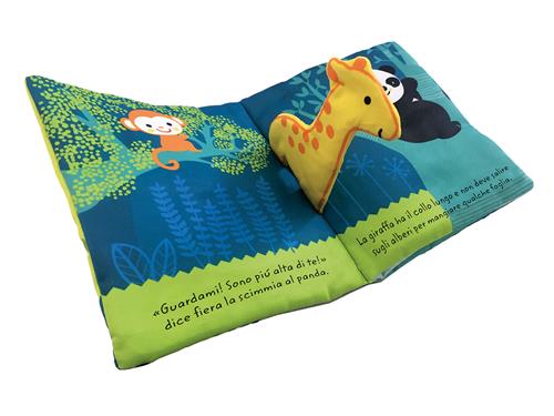 Un libro di stoffa per bambini dai 6 mesi per scoprire i simpatici animali della foresta con una breve storia e illustrazioni colorate. Un libro speciale per sviluppare le capacità di interazione con gli oggetti e la manualità del bambino: morbido e manipolabile, interamente di stoffa imbottita con inserti di diversi materiali e componenti pop-up rumorosi, per cominciare a giocare con i libri! Età di lettura: da 6 mesi.