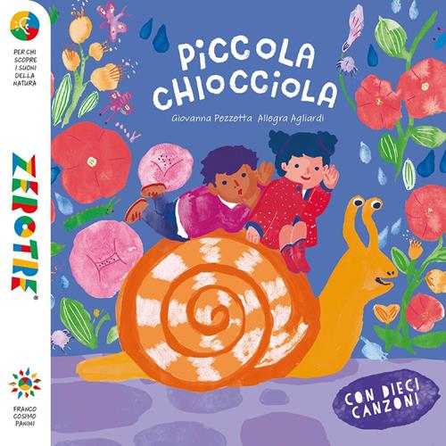 Piccola Chiocciola scopre suoni e rumori della natura, con canzoni, attività e filastrocche, per un incontro di musiche e parole capace di emozionare e divertire. Nel libro un QR code per scaricare 10 canzoni. Accompagna Piccola Chiocciola a scoprire nuovi suoni e rumori, con canzoni, attività, scioglilingua e filastrocche. Testi semplici e poetici invitano i lettori a seguire la creatività di Piccola Chiocciola. Le attività contenute nel libro sono accompagnate da musiche ritmate, ideate appositamente per favorire l’interazione e la complicità tra adulti e bambini oltre a stimolare l’ascolto e l’osservazione della natura, fin dalla più tenera età, con una visione poetica ma esperienziale del mondo. Piccola Chiocciola fa parte della collana Zerotre. Età di lettura: da 2 anni.