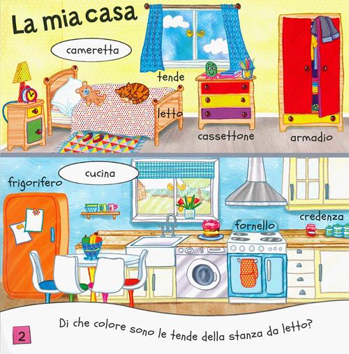 Un primo libro coloratissimo dedicato ai lettori più piccoli per conoscere tanti nuovi vocaboli di oggetti e ambienti vicini al suo mondo in ogni pagina... e un divertente gioco cerca e trova!