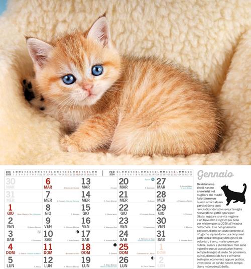 Il calendario gatti 2026, nel pratico formato quadrato, è un vero e proprio must-have per gli amanti di questi meravigliosi animali! Suggerimenti e consigli su come prendersi cura al meglio del tuo fedele amico a quattro zampe. Ogni mese una bellissima fotografia di adorabili e simpatici gattini. Versione luxury con copertina con lavorazione in oro a caldo, spirale e cartonato di fondo per irrigidire il prodotto.
