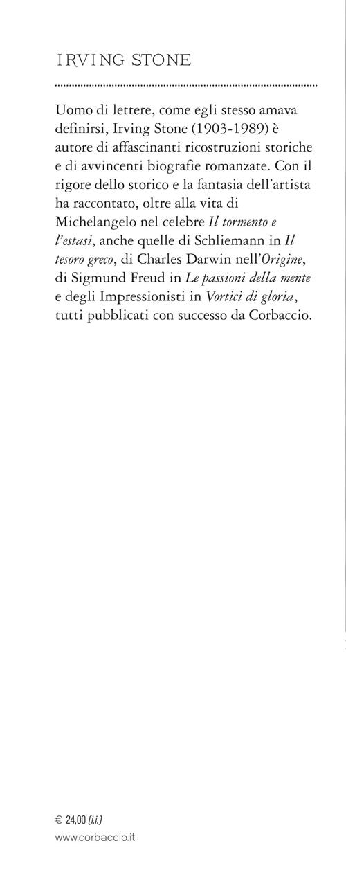 Irving Stone ripercorre in "Brama di vivere" il tormentato cammino della vicenda umana e pittorica di Vincent Van Gogh, rivisitando tutti i luoghi in cui l'artista visse e dipinse, ricreando le sue esaltazioni e le sue crisi, le sue disperazioni e le sue speranze. Dopo gli anni della vocazione religiosa e dell'apostolato fra i minatori del Borinage, Van Gogh visse le prime esperienze di pittore a trent'anni: la sua prima opera fu esposta nel 1883. Venne poi il periodo di Nuenen nel Brabante, il periodo parigino con i contatti con gli impressionisti francesi, quello di Arles e quello di Saint-Remy. Solo nove anni di breve ma folgorante ispirazione pittorica, fino al suicidio in un campo di grano ad Auvers-sur-Oise il 27 luglio 1890. Un'esistenza in cui la vita si identifica con la pittura in un drammatico crescendo di tensione interiore e abbagliante creazione artistica.
