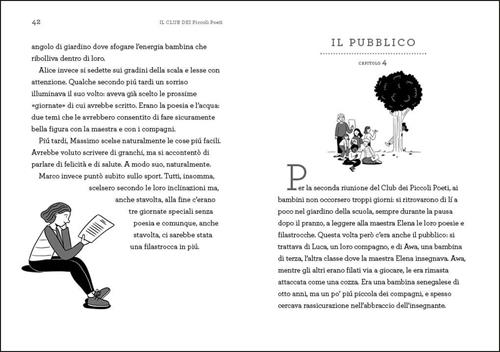Un libro illustrato per bambini dai 9 anni sulla scoperta del mondo attraverso la scrittura, dedicato a tutti i bambini amanti dei versi e a tutti quelli che vogliono crescere meravigliandosi. Una storia che parla di poesia, amicizia, scoperta, scuola, crescita, grandi temi. Alice, Ambra, Anna, Marco e Massimo, compagni di classe di quinta elementare, decidono di fondare un Club di Piccoli Poeti. Massimo vorrebbe parlare di granchi, ma gli altri insistono per trattare temi più alti. Per aiutarli, al Club si unisce ben presto la maestra Elena, felice dell'iniziativa dei suoi alunni. Tra una rima e l'altra, i bambini impareranno così molte cose sul mondo, sugli uomini e sulla vita, e, alla fine, anche i granchi di Massimo vivranno... un momento di gloria. Età di lettura: da 9 anni.