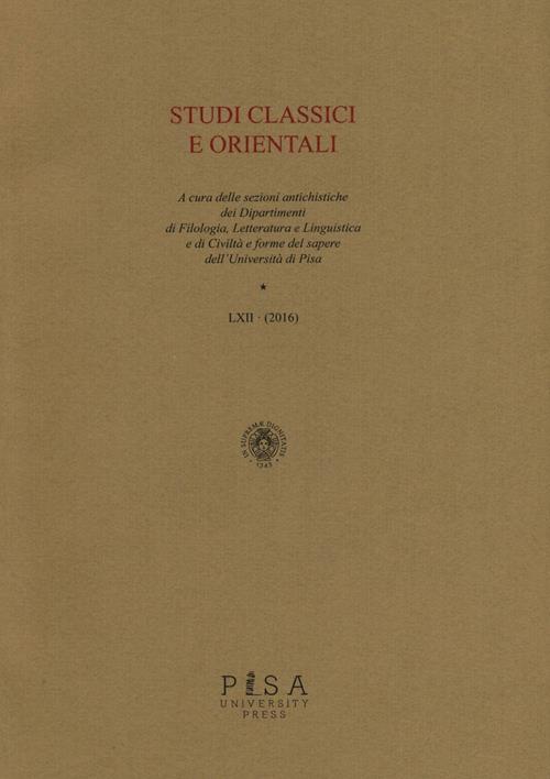 Studi classici e orientali (2016). Vol. 62