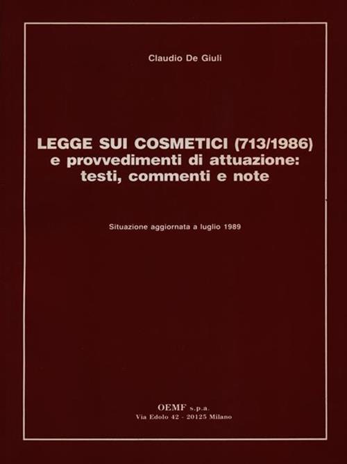 Legge sui cosmetici (713/1986) e provvedimenti di attuazione: testi, commenti e note