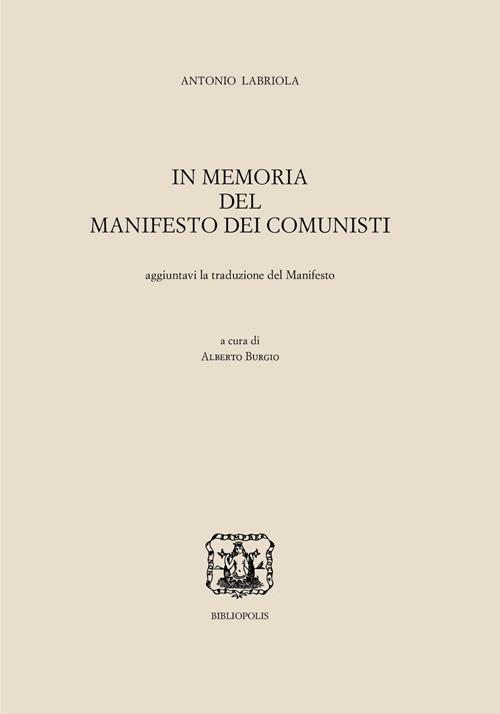 Antonio Labriola può essere considerato il principale protagonista della diffusione del marxismo in Italia, in particolare per la filosofia, e i Saggi sul materialismo storico sono tra i suoi scritti quelli che hanno goduto di maggior successo e di vasta circolazione anche all'estero. Il saggio In Memoria del Manifesto dei Comunisti è qui riprodotto nella versione della terza edizione italiana (1902), l'ultima approvata dall'autore. La nota al testo ricostruisce la genesi e la storia dell'opera e delle sue traduzioni all'estero; l'apparato delle varianti rende conto delle differenze di questa edizione rispetto al manoscritto e alle versioni a stampa precedenti. In appendice è pubblicata la traduzione italiana del Manifesto marx-engelsiano che accompagnò la terza edizione del saggio.