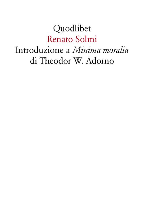 "Leggere le cinquanta pagine introduttive è chiedersi come un giovane da poco uscito d'università abbia potuto scrivere pagine di tanta assoluta intelligenza e lucidità storica; e come simile risultato si sia dato in una situazione politica e intellettuale di chiusura, di dimissione e irrigidimento": così nel 1977 Franco Fortini ebbe a scrivere dell'Introduzione di Renato Solmi a "Minima moralia", il capolavoro di Adorno pubblicato da Einaudi nel 1954 e tradotto dallo stesso Solmi. Operazione originalissima, l'Introduzione è tale alla lettera ma nel senso più ampio e inclusivo: in largo anticipo rispetto ad altre culture, non solo colloca il pensiero adorniano all'interno del dibattito novecentesco, ma ne discute categorie e movenze filosofiche specifiche (nel solco di "Dialettica dell'illuminismo") mettendole alla prova nella concreta cornice storica del tempo: saggio vero e proprio, quindi, che per questa ragione oggi si può leggere cogliendo l'autonomia e lo stile intellettuale con cui l'allievo seppe trattare il maestro, insieme delineando un lessico della "modernizzazione" che continua a proporci domande e rammentarci speranze, illusioni e inadempienze del nostro passato e del nostro presente.