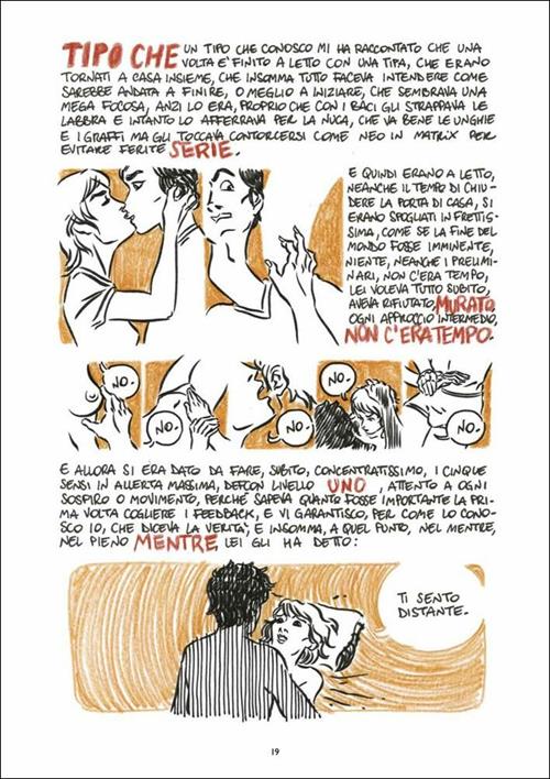 «Emanuele Rosso dimostra con i suoi fumetti di saper osservare, ma soprattutto sa ascoltare: i discorsi della gente sugli autobus, alle feste, durante le cene tra amici, sul web, sotto i portici di Bologna, la sua città di adozione. Se lo segui sui social che frequenta, sai che riesce a raccontare con raro realismo e ironia i turbamenti, i dubbi, le epifanie, le sconfitte, i vagheggiamenti e i vaneggiamenti che hanno a che fare con le relazioni, coi sentimenti, col sesso.» - Frizzi Frizzi