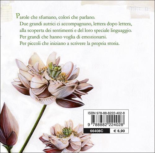 Parole che sfumano, colori che parlano. Due grandi autrici ci accompagnano, lettera dopo lettera, alla scoperta dei sentimenti e del loro speciale linguaggio. Per grandi che hanno voglia di emozionarsi. Per piccoli che iniziano a scrivere la propria storia. Età di lettura: da 3 anni.