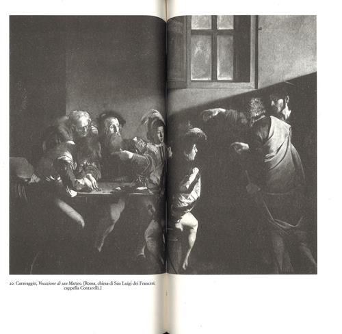 "Questa volta mi occuperò del Caravaggio. Finora, sia me ne mancasse l'agio, sia la mia curiosità non fosse stimolata abbastanza, o forse per la combinazione delle due cause, non mi sono mai dato la pena di entrare in dimestichezza col Caravaggio. Accade, nella vita, di sentir parlare di questa o quella persona che gli amici reputano affascinante, e tuttavia essa non viene a far parte della nostra intima cerchia anche dopo ripetuti incontri. Poi, un caso fortunato dissipa il velo opaco che ci tratteneva dall'approfondire quei rapporti saltuari, e viene il gusto e la voglia di contatti più stretti e di una conoscenza completa. Comincerò con l'esaminare le opere superstiti del nostro pittore. Fino a pochi decenni or sono, la sua personalità di artista era nebulosa come quella di un Leonardo o di un Giorgione prima degli studi morelliani. Qualsiasi tela presentasse, in forti contrasti di luce, volgari e obesi giganti sacrilegamente atteggiati a Cristo o ad apostoli, figure con piumacci, baraonde di uomini e di donne dall'aspetto vizioso e alticcio, giovinastri occupati a giocare ai dadi o a barare alle carte, o più dignitose scene di concerti, veniva senz'altro attribuita a lui. Non così oggi. Il Caravaggio ha cessato d'essere una categoria o una specie, e ha riacquistato una personalità artistica definita quanto quella di Leonardo, o almeno quanto quella di Giorgione. Studierò soltanto i quadri che gli appartengono in modo indiscusso, secondo il giudizio dei più competenti."