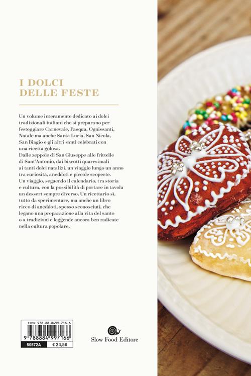 Un volume interamente dedicato ai dolci tradizionali italiani che si preparano per festeggiare Natale, Carnevale, Pasqua ma anche Santa Lucia, San Nicola, San Giuseppe e tutti gli altri santi e patroni cui la cucina associa una ricetta golosa per celebrarli.