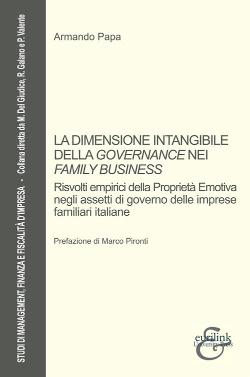 Il presente volume fonda le proprie radici nella branca della letteratura manageriale concentrata sui sistemi di governance in Italia, stabilito che sia difficile convogliare gli studiosi (sia in accademia che in management) verso un itinerario di path-dependence poiché diverse sono le criticità e divergenti sono gli approcci. Il presupposto di quest'impostazione, se vogliamo, annunciava una dimensione "patologica" della corporate governance, poiché presagiva rapporti basati sulla fonda (arm's lenght), sul potere contrattuale, sui conflitti e sull'ostilità che dedicavano scarsa attenzione al molo della famiglia come meccanismo endemico di funzionamento del sistema impresa. Di fatto, non sempre nelle realtà imprenditoriali, soprattutto quelle complesse come i family business questo accade: anzi, spesso, il simbiotismo e la collaborazione tra chi gestisce e chi controlla sono alla base di un'efficiente gestione dell'organizzazbne. Parallelamente, gli studiosi di management convinti hanno sottolineato la necessità che l'azione di governo aziendale prendesse in considerazione altri elementi dell'impresa, ascrivibili alla natura più squisitamente intangibile della stessa, quali: la reputazione, l'immagine, l'organizzazione, il brand, i processi produttivi, il territorio. Tutti questi elementi sono attribuibili non più alla sola dimensione capitalistica della governance bensì ad una emozionale, la quale coinvolge un parterre di portatori di interesse ben più ampio, in primis la famiglia di controllo che diventa il punto di congiunzione al rapporto biunivoco con l'ambiente estemo. Attraverso un'analisi a due livelli della letteratura derivante dagli studi sociali e manageriali (Hirschman, 1970; Roethlsberger, 1977; Potter & McKibbin, 1988; Leavitt, 1989; Mintzeberg & Gosling, 2002; Pfeffer & Fong, 2002; Donaldson, 2002), viene esaminato l'impianto di governo dell'impresa familiare enfatizzandone una nuova modularità che richiama i contenuti di proprietà emotiva ed affettiva che coinvolgono la sopravvivenza dell'azienda nel lungo periodo. Richiamando la teoria della complessità sistemica (Golinelli & Gatti, 2001; Maggioni, 2007; Dezi, 2010), il ruolo di governo e di gestione aziendale in carico alla famiglia di controllo (Le. la governance) si prospetta come uno dei fattori intangibili più influenti sulle strategie e le performance dell'impresa. La novità di questa prospettiva interpretativa, rispetto agli studi prevalenti sulla tematica, deriva dalle numerose domande di ricerca che emergono quando si analizzano i meccanismi di gestione dell'impresa, nel dialogo tra organo di governo e struttura operativa e nell'interpretazione cognitiva della performance. Il modello alla base del presente studio supporta la tendenza a dover riconsiderare la gestione ed il governo dell'impresa, non soltanto in funzione di elementi "hard" legate alla performance quanto l'introduzione di elementi di intangibilità: quali l'emozionalità ed il clima aziendale da parte del manager-imprenditore di script cognitivi che favoriscano il processi di successione familiare negli assetti proprietari dell'impresa, la cui combinazione tacita e nascosta con la sua proprietà racchiude le vere fonti del vantaggio competitivo, quindi della performance di lungo periodo del family business.