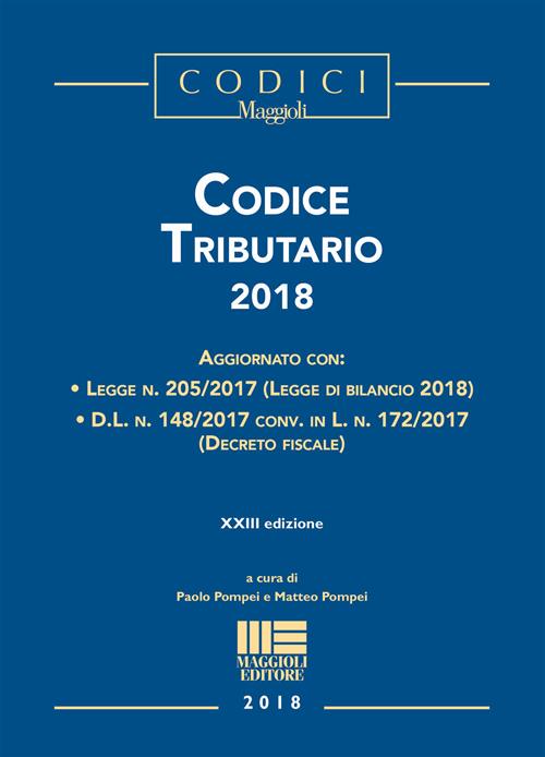 Il codice - aggiornato con le più recenti novità legislative, tra cui si segnalano il Decreto fiscale 2018 (Decreto Legge 16 ottobre 2017, n. 148, convertito in Legge 4 dicembre 2017, n. 172) e la Legge di bilancio 2018 (Legge 27 dicembre 2017, n. 205) - è articolato in cinque parti: Imposte Dirette Imposte Indirette Tributi locali Sanzioni, contenzioso e conciliazione giudiziale Appendice L'opera è annotata con le modifiche intervenute, l'entrata in vigore e gli effetti transitori, i rinvii a disposizioni collegate ed i chiarimenti ai disposti, quando necessari. La consultazione è agevolata da un indice sistematico estremamente dettagliato e dal grassetto che evidenzia le modifiche apportate a decorrere dal 2017.
