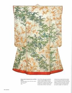 Mentre il Giappone, a metà Ottocento, si apriva alla cultura occidentale, il flusso di merci dall'Oriente verso l'Europa e l'America avviava il fenomeno culturale del "giapponismo". Da allora la fascinazione del Sol Levante non ha mai cessato di alimentare i sogni di collezionisti e amanti del bello. Sono queste le premesse culturali in cui nasce la straordinaria Collezione Khalili, che raccoglie oltre duecento kimono, manufatti artistici tra i più rappresentativi della cultura gIapponese. Il kimono - l'abito tradizionale della società nipponica, codificato secondo regole antiche che determinano genere, classe e status di chi lo indossa - si distingue per la forma essenziale a "T", ricavata da tagli di stoffa che scendono dritti dalla spalla. Una cucitura centrale lungo la schiena unisce le due metà, cui vengono attaccate le maniche, e applicati il colletto e il sopracolletto. L'indumento avvolge il corpo, con la parte sinistra sovrapposta alla destra, e viene fermato con una fascia, l'ohi. Se nei secoli la forma del kimono non ha sostanzialmente subito cambiamenti, l'assoluta varietà delle decorazioni si è evoluta nel tempo, trasformandolo in manufatto propriamente "artistico". Sete e tessuti dai mille colori, motivi ornamentali tessuti a mano, ricami di fattura finissima ci raccontano una cultura figurativa millenaria.