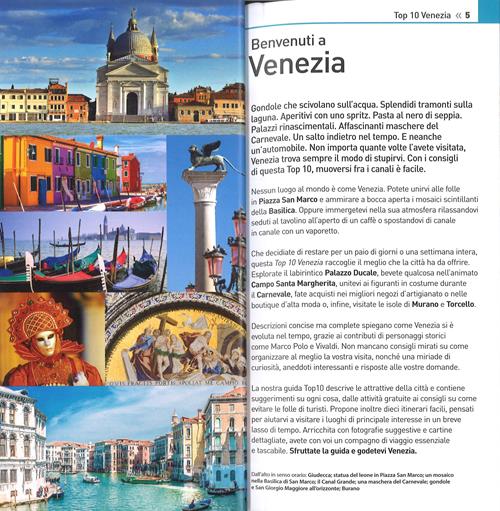 Questa guida Top 10 offre un soluzione pratica per pianificare un viaggio a Venezia: ricca di idee, informazioni dettagliate e consigli utili, vi farà scoprire il meglio della Serenissima. Liste Top 10 con le principali attrazioni di Venezia, dai ponti ai palazzi, fino ai migliori caffè, enoteche e ristoranti; Itinerari stimolanti per sfruttare il vostro soggiorno; Mappa lucida estraibile per muoversi con facilità; Escursioni a piedi attraverso i quartieri storici di Venezia; Fotografie suggestive evidenziano il fascino di Venezie; Informazioni pratiche su tutto ciò che c'è da sapere per vivere al meglio il vostro viaggio.