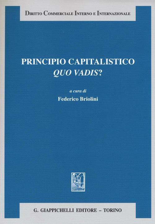 Il Volume dal titolo "Principio capitalistico. Quo vadis?" contiene contributi di alcuni dei più importanti giuscommercialisti italiani, dedicati alle recenti tendenze evolutive delle norme che ruotano intorno all’istituto del capitale sociale e al principio capitalistico. Il titolo del Volume Principio capitalistico. Quo vadis? evoca la tendenza, in atto negli ultimi anni a livello legislativo, ad un indebolimento del classico principio del diritto delle società di capitali che impone l’attribuzione dei diritti sociali (per es., il diritto di voto) su rigorosa base capitalistica. Il Volume si rivolge prioritariamente agli studiosi della materia del Diritto commerciale e societario, nonché a coloro che per ragioni professionali affrontano quotidianamente questioni connesse ai temi ivi trattati.