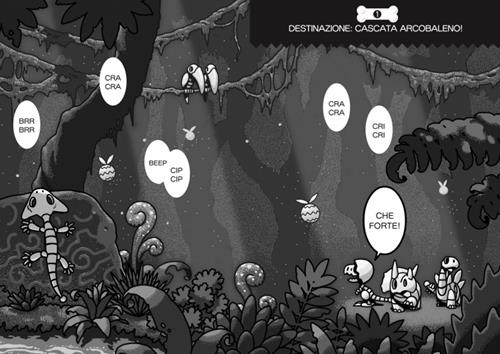 Bentornati a Fossilandia, la terra dei dinossauri! Baby, Tops e Crest sono vivaci cuccioli di dinossauro che adorano vivere sempre nuove avventure insieme. Durante uno dei loro viaggi decidono di esplorare la giungla Guru Guru per ammirare la cascata Arcobaleno, nelle cui acque si cela il Pirarucu, uno spirito guardiano. Una minaccia incombe però su queste meraviglie! Riusciranno i tre amici a salvare la foresta? Età di lettura: da 6 anni.