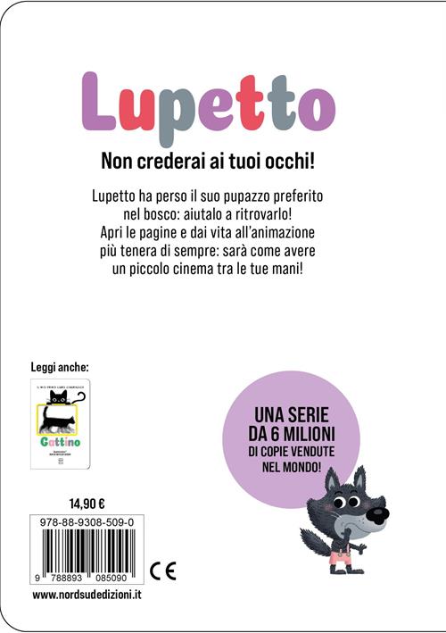 Dopo il grande successo di "Gattino", il nuovo libro in Scanimation® di Rufus Butler Seder! Non crederai ai tuoi occhi! Lupetto ha perso il suo pupazzo preferito nel bosco: aiutalo a ritrovarlo. Apri le pagine e dai vita all'animazione più tenera di sempre: sarà come avere un piccolo cinema tra le tue mani! Età di lettura: da 3 anni.