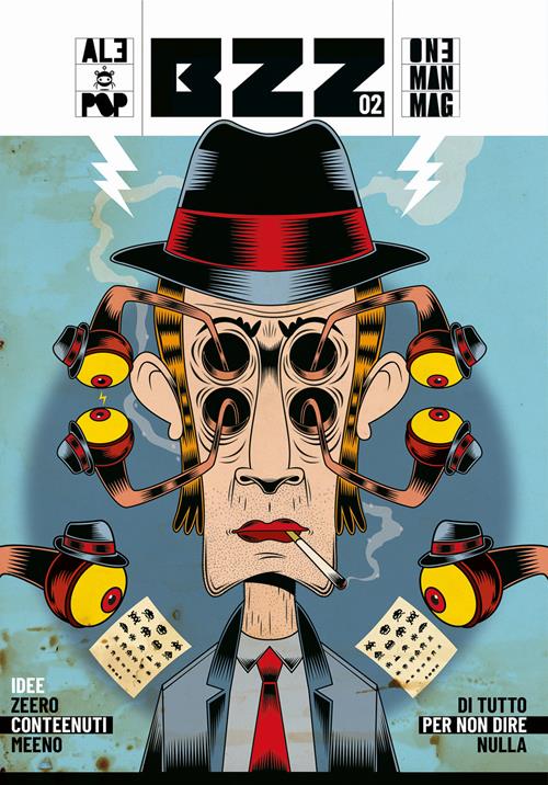 Il secondo volume di “Bzz” raccoglie storielle lunghe e corte realizzate nel corso di una vita e pubblicate a spizzichi su fanzine, riviste autoprodotte e qualche magazine ad alta tiratura (…). Come da sempre il suo stile narrativo mescola fumetto, illustrazione, grafica, arte visiva in generale. Difficile incasellarlo in un genere (…). La sua anarchia visiva è costante. L’umorismo, anche. Viene da decenni di autoproduzioni ed esperimenti, spesso dissacranti rispetto alle “parrocchie con il parocchi”. In coda al “one mag mag” troverete una piccola testimonianza che descrive un qualche ché accadutogli. Un motivo in più, per non prendersi troppo sul serioso. Perché basta un attimo e non ci sei più. Le bazzecole della vita diventano facezie. I contenuti del numero 02: Mentre stavi, Front back, A Laredo, Sotto il sole rovente, Durante un mezzogiorno di fuoco, Schifarra, Popydak il portaqualcosa, Lacrime nazionalpop, Fanz, L’autore sconosciuto, La mia vernice, Monumento, Gente di borgata, Il pescatore, I favoli di nonno minchione, Se Hitler fosse di..., Skecciobukki, Dùballons, L’indagine, L’altra storia del fumetto, The Niuz. Popy dak. Fumettinsulsi, La rivolussione, Non so + cosa raccontare, La mia rcn, Fuori posto, Kagasoto pappa, Anti piovra show, Il fumettiere, Scontro titanico, Good night nordest, Che superpalle, Ohhh amurrr, Amove di amovino, Cuore di punk, Sweet panana, Hippy calzelunghe, Hippy park, Robe di kappa, Tele balilla, Vamos a la playa, Zombolo fa buh!, Polvere vintage, Io follio katz. Bzz gallery.