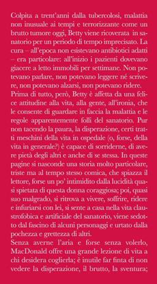 Anni '40. Colpita dalla tubercolosi, Betty viene ricoverata in sanatorio. La cura – all'epoca non esistevano antibiotici adatti – prevedeva che i pazienti giacessero a letto immobili per settimane. Non potevano alzarsi, parlare, leggere o scrivere. Per fortuna, però, Betty è un'ottimista e ha uno spiccato senso dell'ironia che le consente di guardare in faccia la malattia e le regole apparentemente folli del sanatorio. Pur rivelando la paura, la disperazione e certi tratti meschini della vita in ospedale è capace di sorriderne, di avere pietà degli altri e anche di sé stessa. MacDonald offre una grande lezione di vita a chi desidera coglierla; è inutile fingere di non vedere la disperazione, il dolore, la solitudine; è molto meglio accogliere questi compagni di certi periodi dell'esistenza con una risata, anche se un po' a denti stretti.